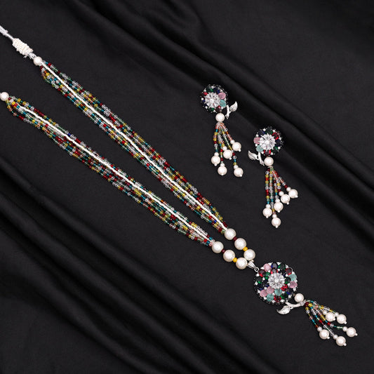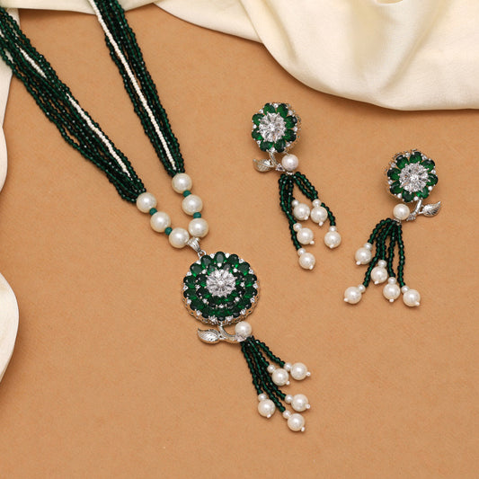 Green Color American Diamond Necklace Set (CZN820GRN )