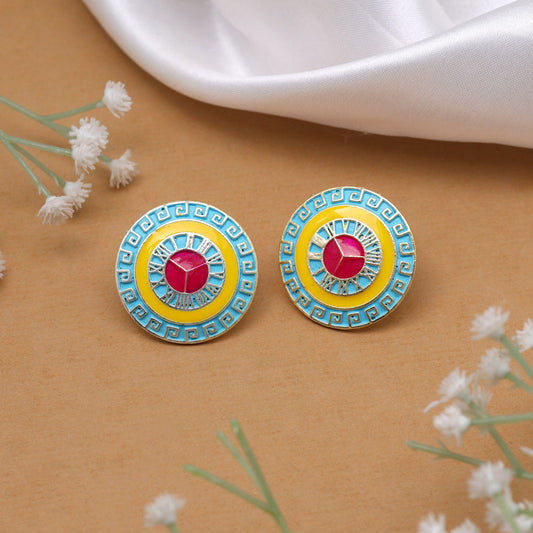 Gold Color Meenakari Earrings (MKE1720GLD)