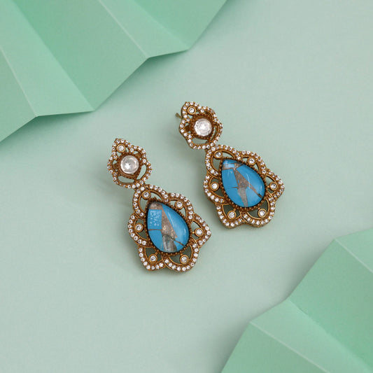 Elegant Firozi Color American Diamond Earrings For Sophisticated Party Wear