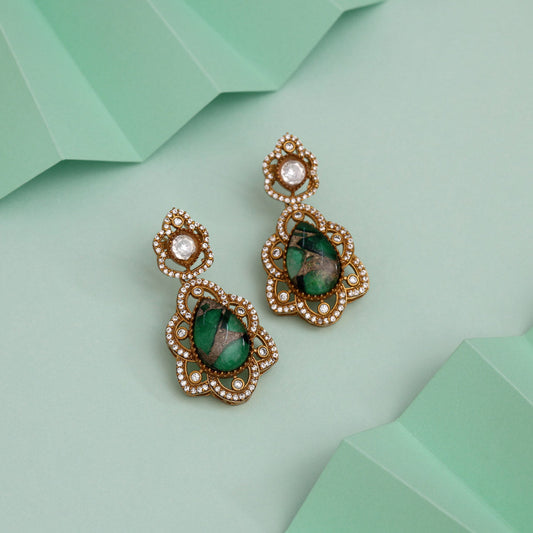 Natural Green Color American Diamond Earrings For Earthy And Ethnic Vibes