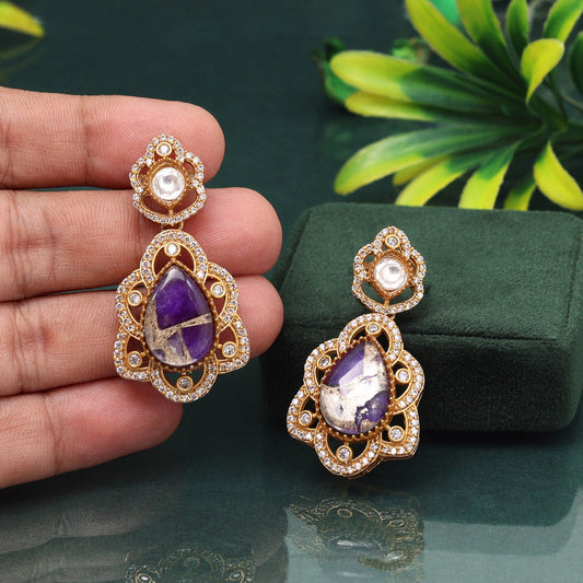 Majestic Purple Color American Diamond Earrings With Regal Style Statement