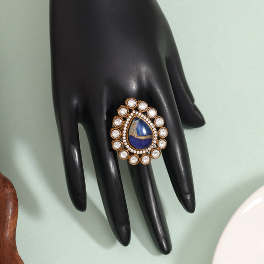 Classy Blue Color American Diamond Finger Ring For Modern Occasions