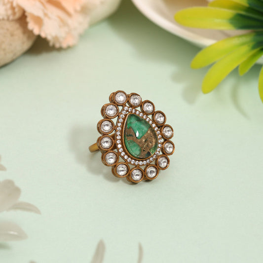 Vibrant Green Color American Diamond Finger Ring For Trendy Styling