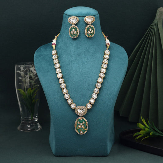 Rama Green Color American Diamond Necklace Set With Unique Antique Finish