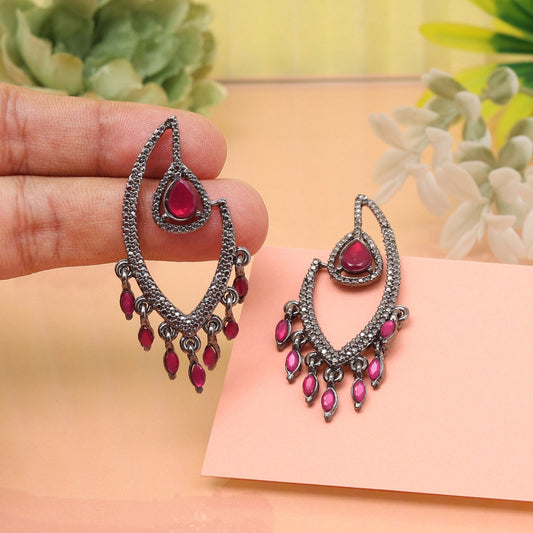 Stylish Rani Color American Diamond Earrings For Wedding Guest Glamour