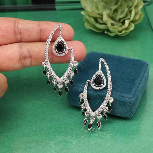 Intense Black Color American Diamond Earrings For Powerful Fashion Statement