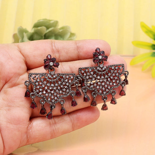 Deep Purple Color American Diamond Earrings With Glamorous Wedding Appeal