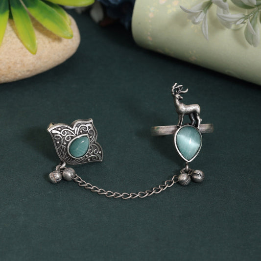 Stylish Pista Green Color Oxidised Two In One Finger Ring Choice