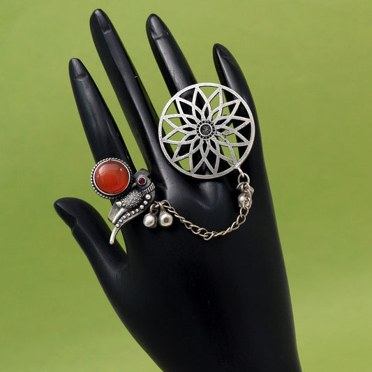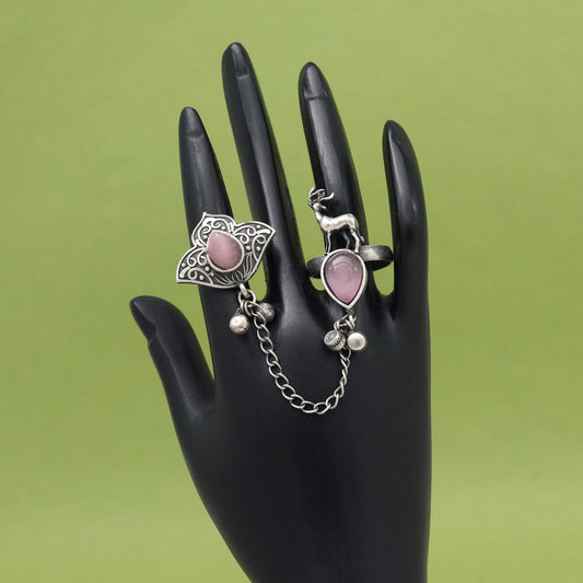 Elegant Pink Color Oxidised Two In One Finger Ring For Women
