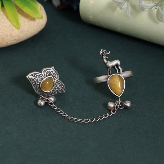 Bright Yellow Color Oxidised Two In One Finger Ring Fashion Piece