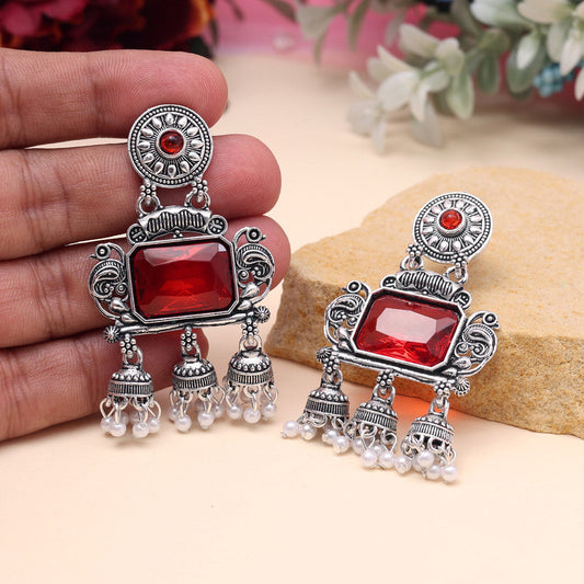 Ruby Color Oxidised Earrings (GSE3073RUBY)