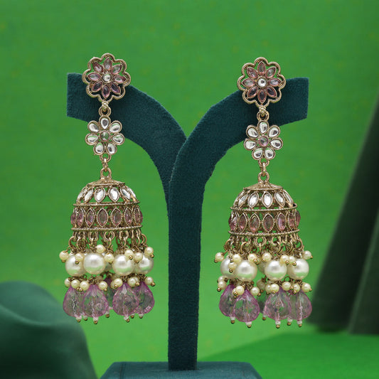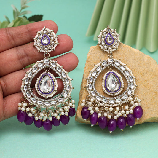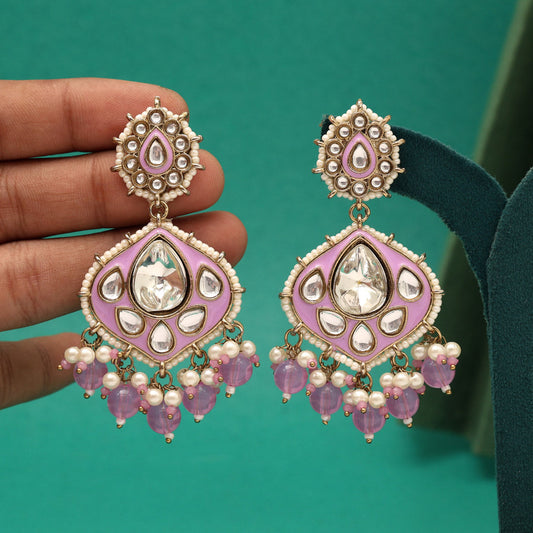 Light Purple Color Kundan Meenakari Earrings (KDE985LPRP)