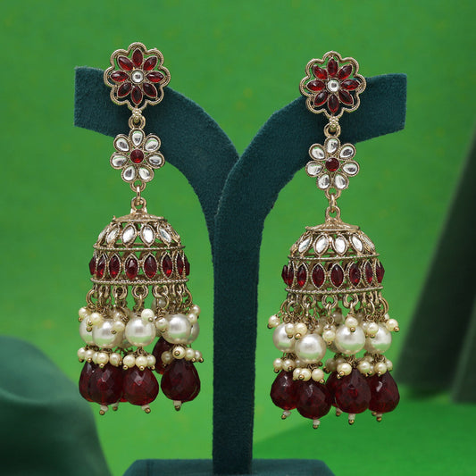 Maroon Color Kundan Earrings (KDE1000MRN)