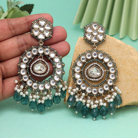 Bottle Green Color Kundan Earrings (KDE965BGRN)