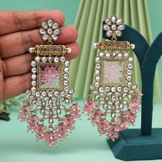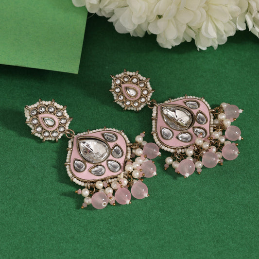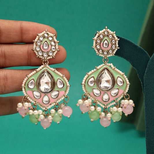 Pink & Pista Green Color Kundan Meenakari Earrings (KDE985PNKPGRN)