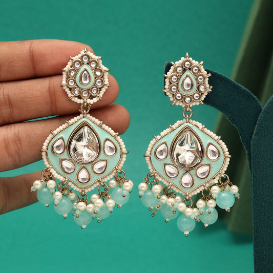 Sky Blue Color Kundan Earrings (KDE1000SBLU)