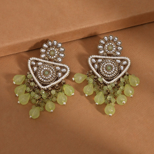 Pista Green Color Kundan Earrings (KDE993PGRN)