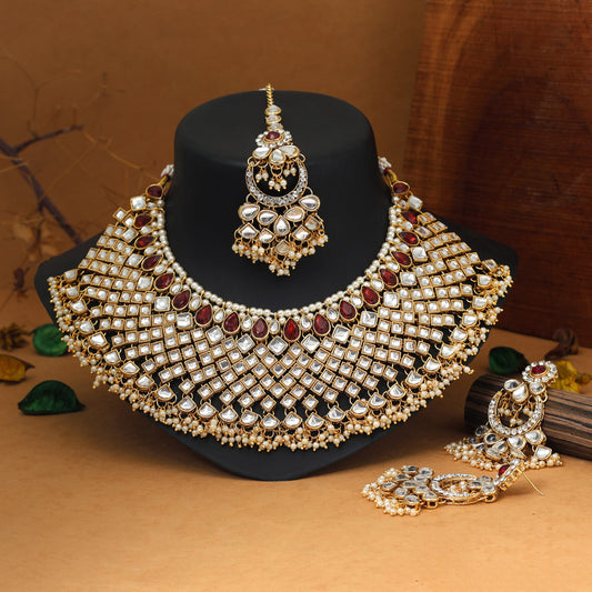 Maroon Color Kundan Necklace Set (KN1026MRN)