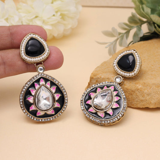 Black Color Kundan Meenakari Earrings (KDE985BLK)