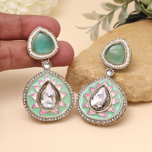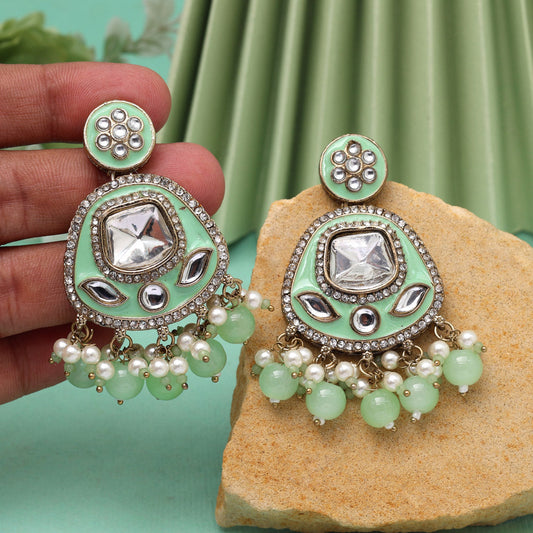 Pista Green Color Kundan Meenakari Earrings (MKE2005PGRN)