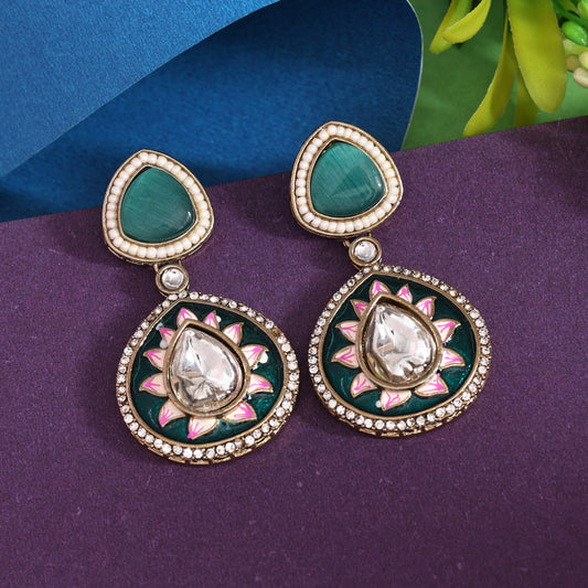Green Color Kundan Meenakari Earrings (MKE2005GRN)