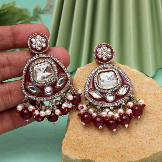 Maroon Color Kundan Meenakari Earrings (MKE2005MRN)