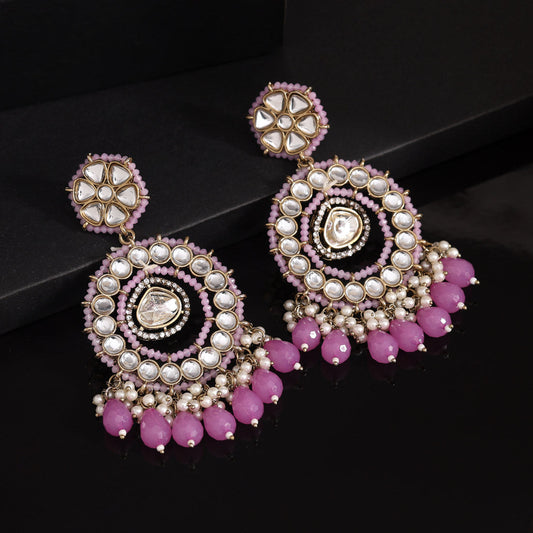 Light Purple Color Kundan Earrings (KDE1000LPRP)