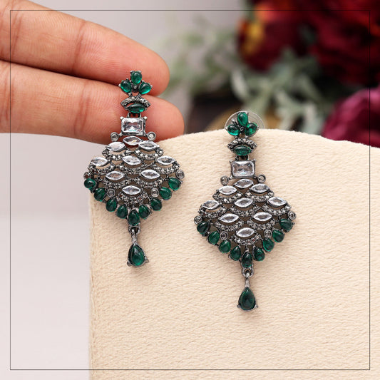 Green Color Black Antique Earrings (DRKDE168GRN)