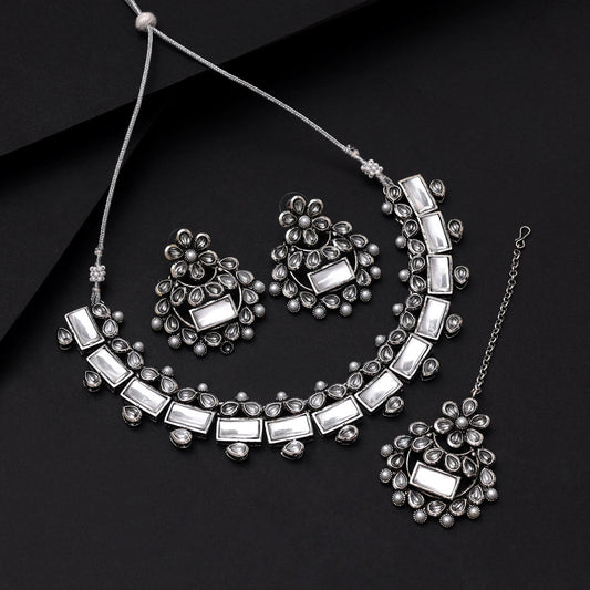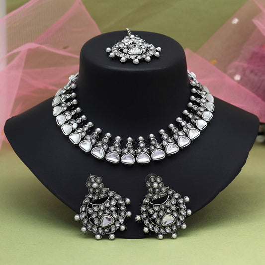 Silver Color Oxidised Necklace Set (GSN2068SLV)