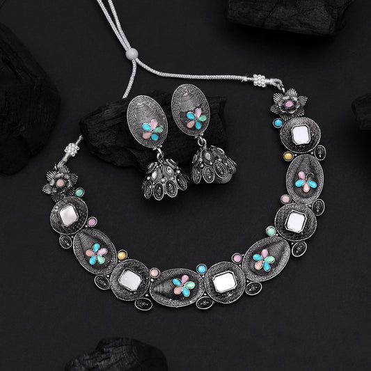 Multi Color Oxidised Necklace Set (GSN2072MLT)