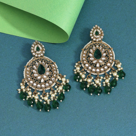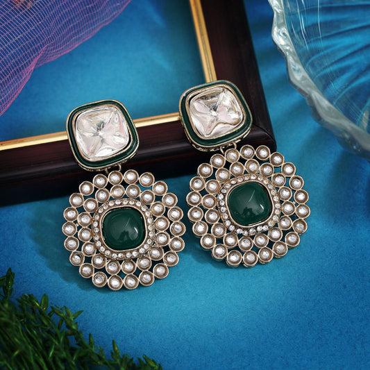 Green Color Moissanite Kundan Earrings (KDE975GRN)