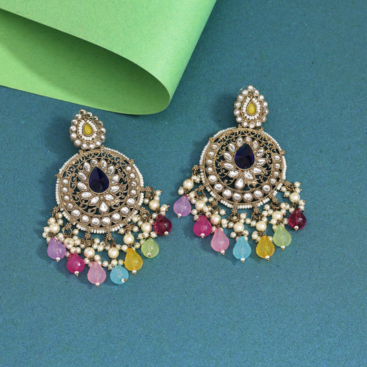 Sky Blue Color Kundan Earrings (KDE974SBLU)