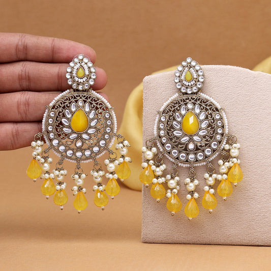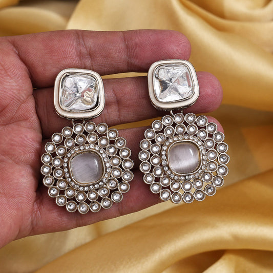 White Color Moissanite Kundan Earrings (KDE975WHT)