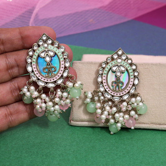 Pista Green & Pink Color Kundan Earrings (KDE976PGRNPNK)