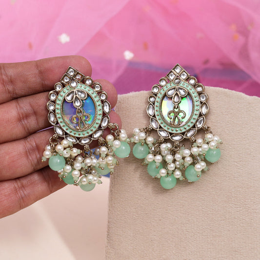 Pista Green Color Kundan Earrings (KDE976PGRN)