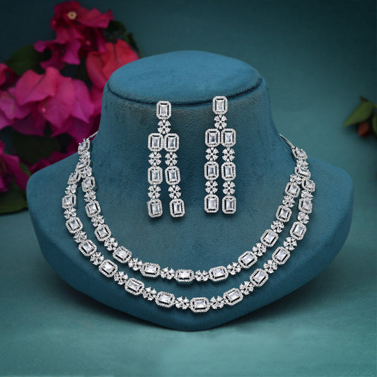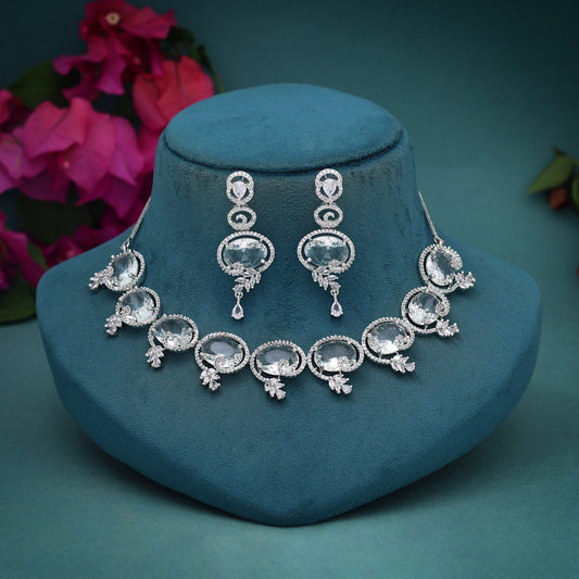 Silver Color American Diamond Necklace Set (CZN1034SLV)