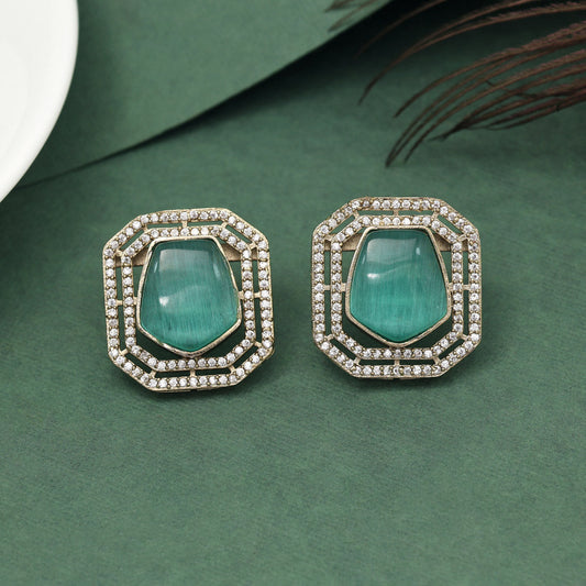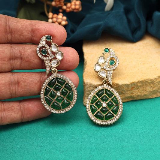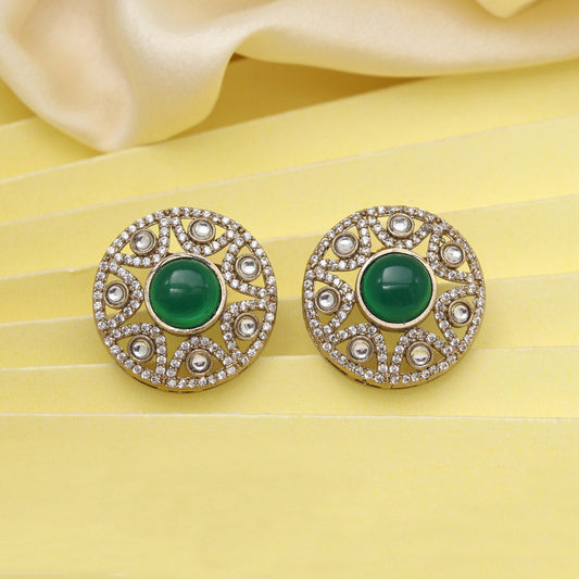 Pista Green Color American Diamond Earrings (ADE603PGRN)