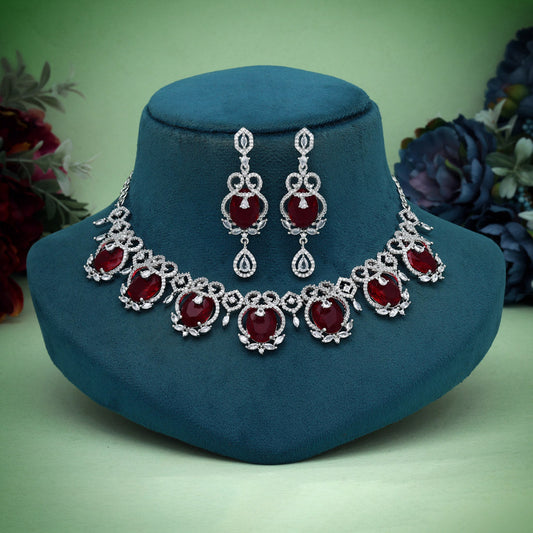 Ruby Color American Diamond Necklace Set (CZN1015RUBY)