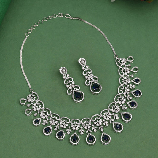 Blue Color American Diamond Necklace Set (CZN960BLU)