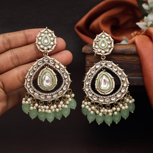 Pista Green Color Kundan Earrings (KDE964PGRN)