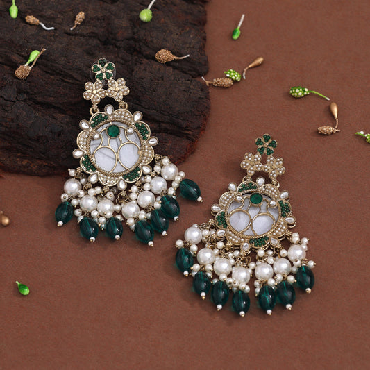 Green Color Mother Of Pearl Kundan Earrings (KDE970GRN)