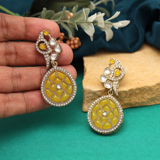 Mustard Yellow Color Oxidised Earrings (GSE2991MYLW)