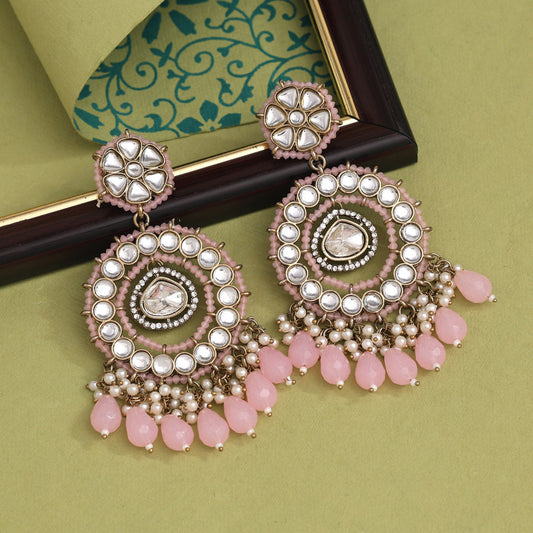 Light Purple Color Mother Of Pearl Kundan Earrings (KDE973LPRP)