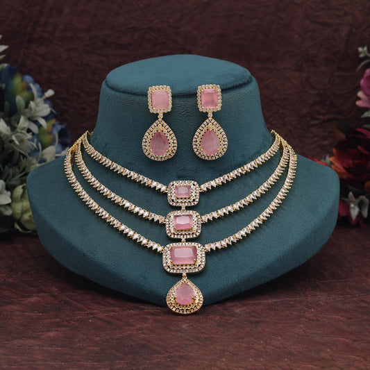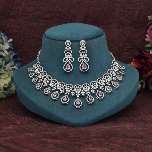 Light Pink Color American Diamond Necklace Set (CZN960LPNK)