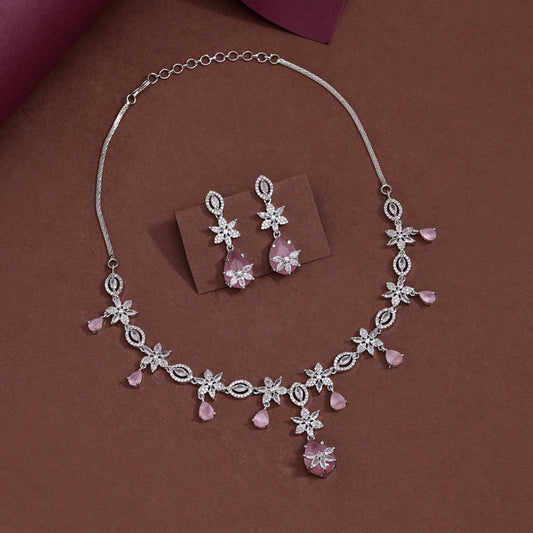 Pink Color American Diamond Necklace Set (CZN965PNK)