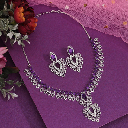 Purple Color American Diamond Necklace Set (CZN925PRP)
