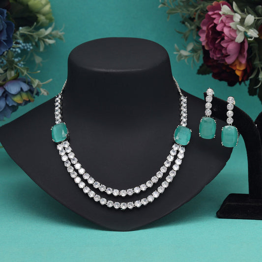 Rama Green Color American Diamond Necklace Set (CZN974RGRN)