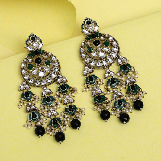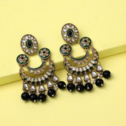 Black Color Kundan Earrings With Maang Tikka (KDTE556BLK)