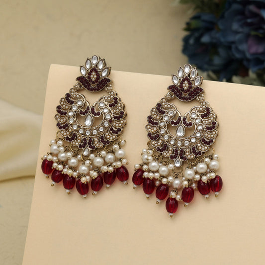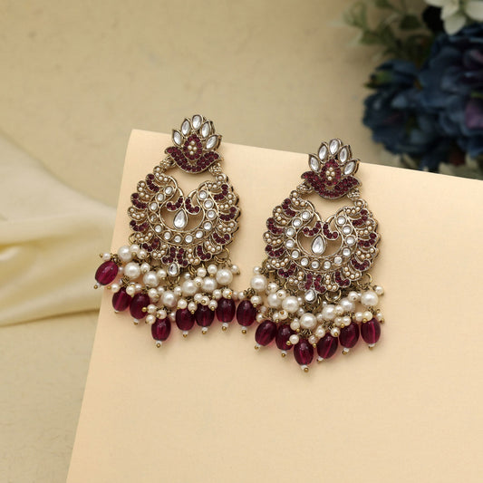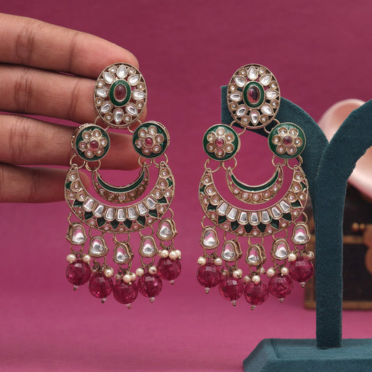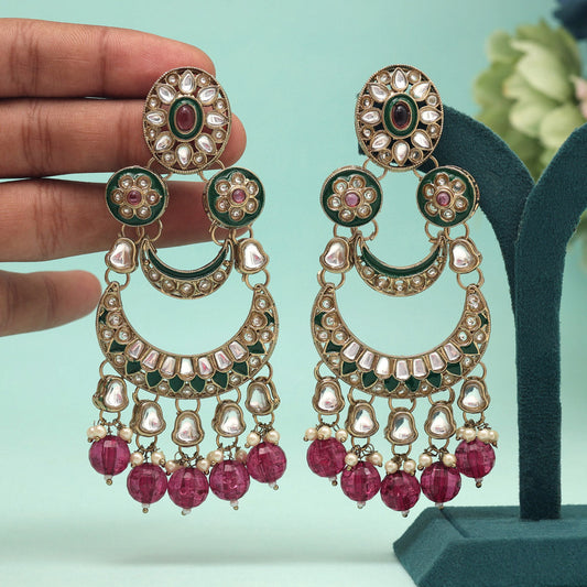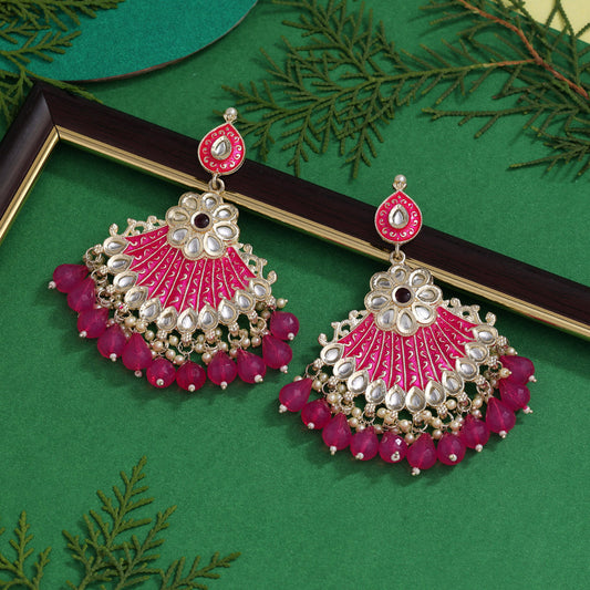 Rani Color Kundan Meenakari Earrings (MKE1996RNI)