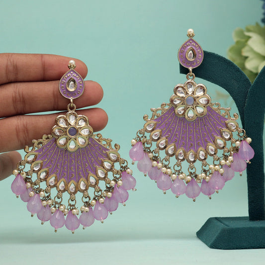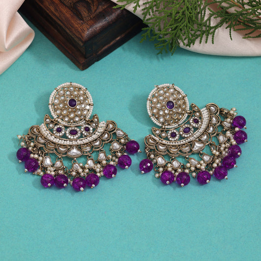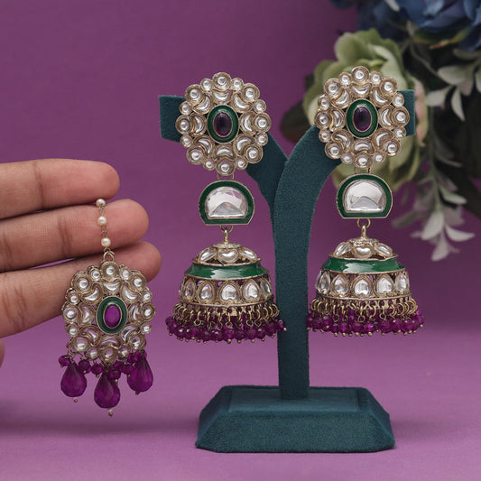 Purple Color Kundan Earrings With Maang Tikka (KDTE556PRP)